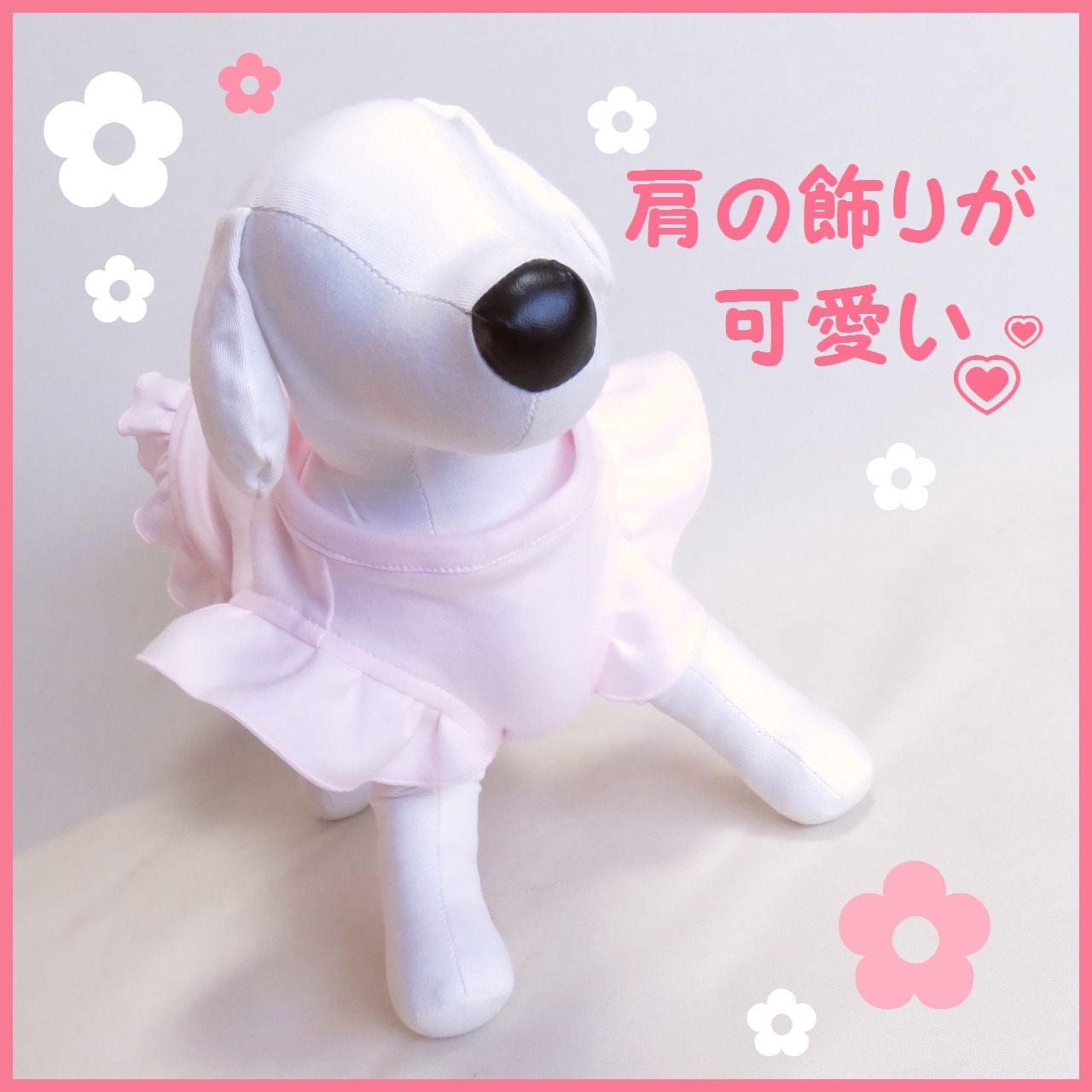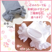 ・コットンレース→ギャザーを寄せた白いコットンレースが、ワンちゃんの肩回りを華やかに飾ります♪