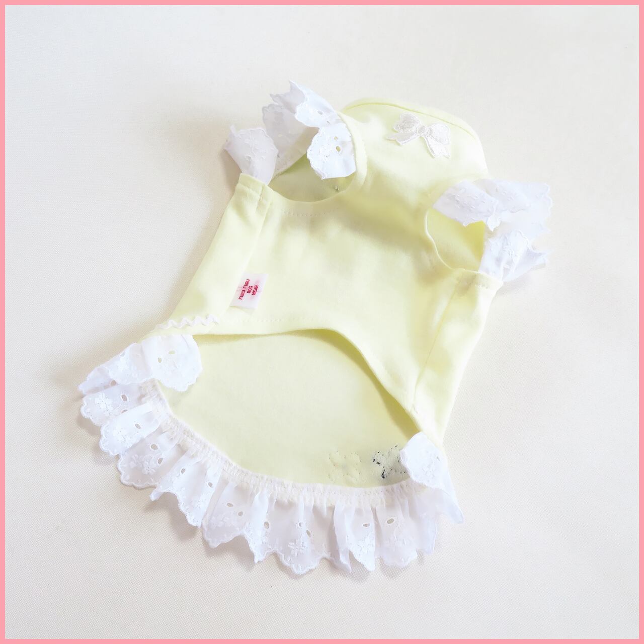 ★肩に飾りのレースは付いていますが、袖無しタイプなので袖が苦手なワンちゃんにも快適に着ていただけます♪