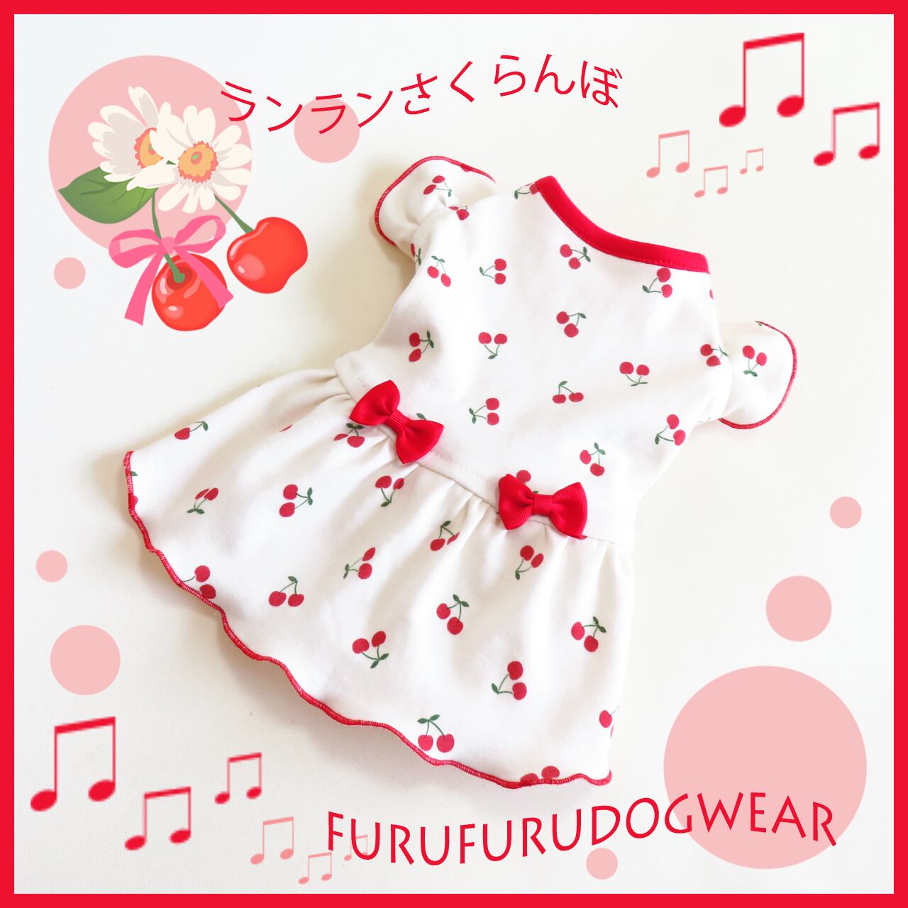 <完成品>SSサイズ<在庫一点>◆ランランさくらんぼ◆ニットワンピ *ns*sk★犬服★