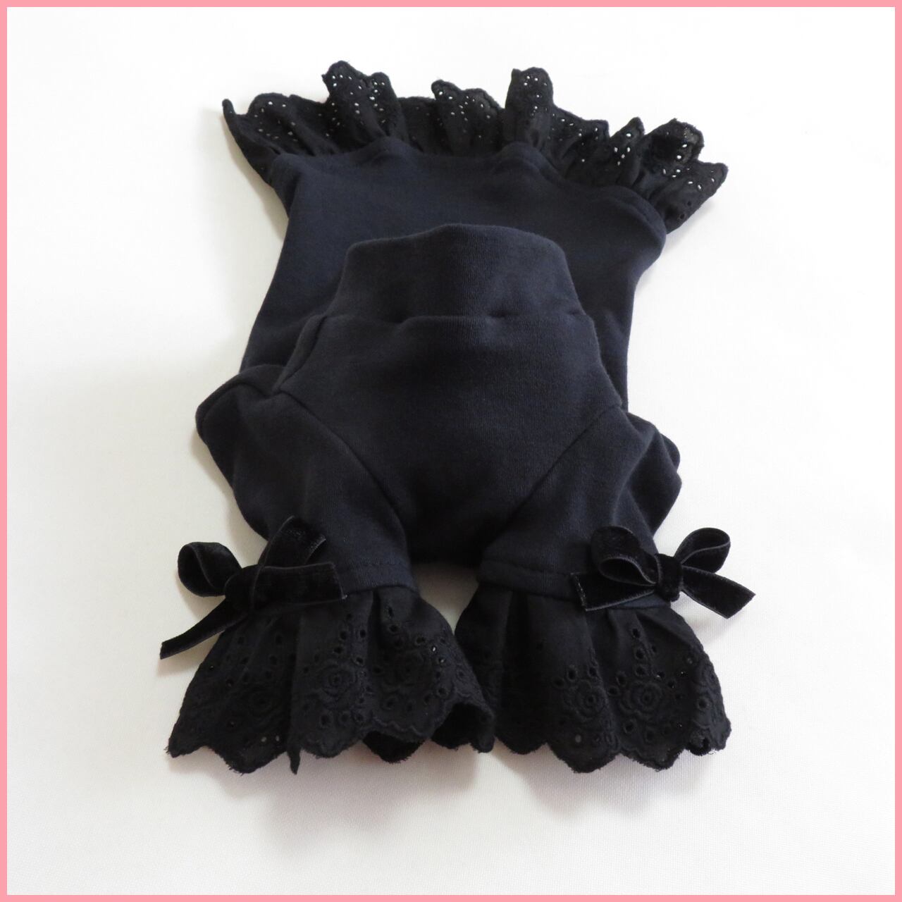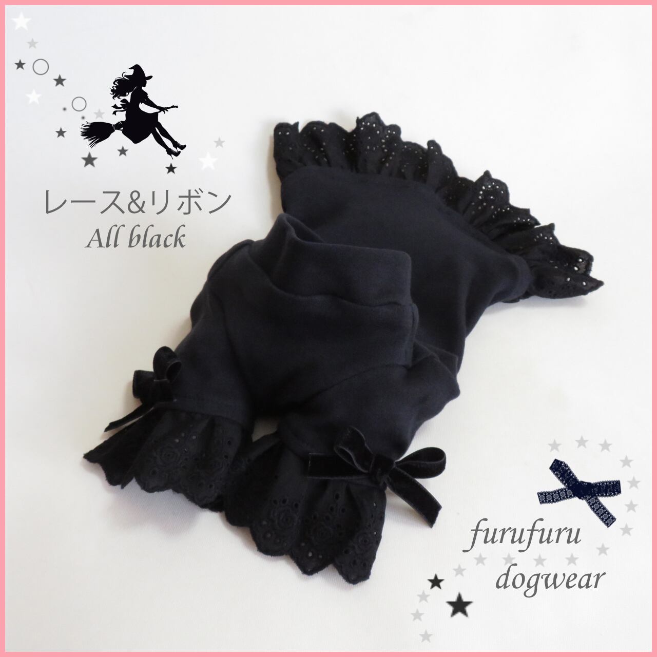 【オーダー品】★レース&リボンallblackゴシックドレス★ニットワンピース★3S~Mサイズ★犬服★