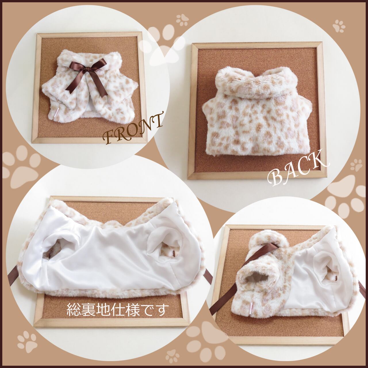 ★今冬は、キャラメル色とくすみピンクの組み合わせがとても可愛い、ガーリーなレオパード柄のフェイクファーでお作りします♡(ファー生地の地色はアイボリーです)