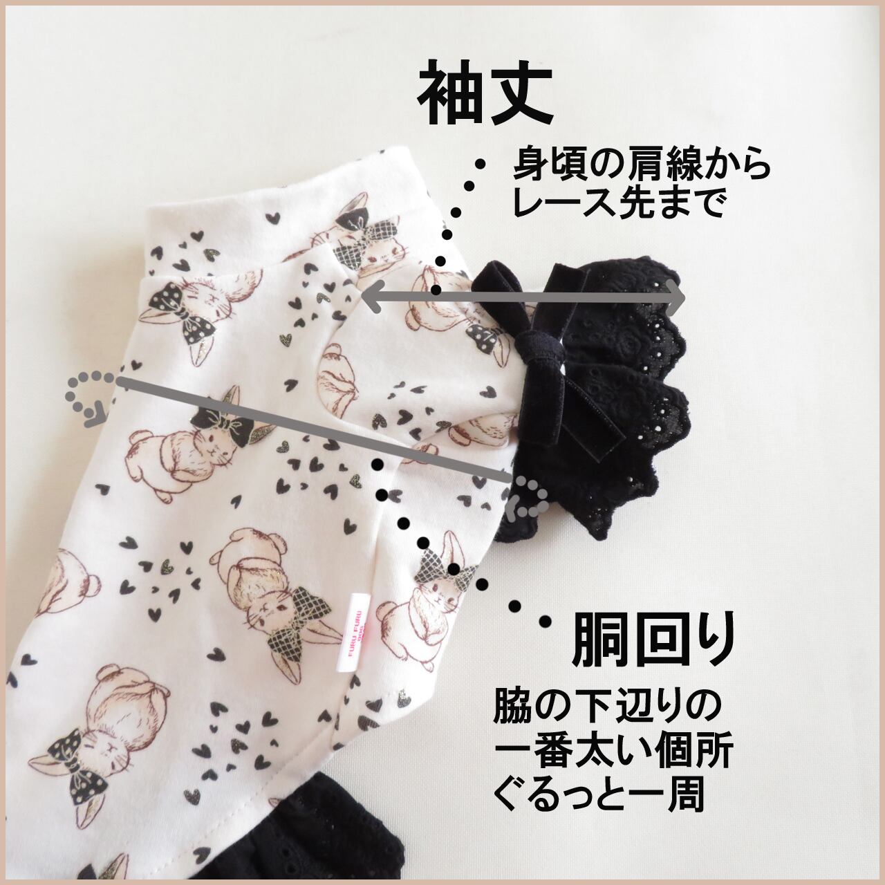 ★こちらのデザインの袖丈調整はレースに幅があるため(約4.5cm)、小さいサイズは5mm~1cmほどしか短くできません。足の短いワンちゃんはご注意ください。