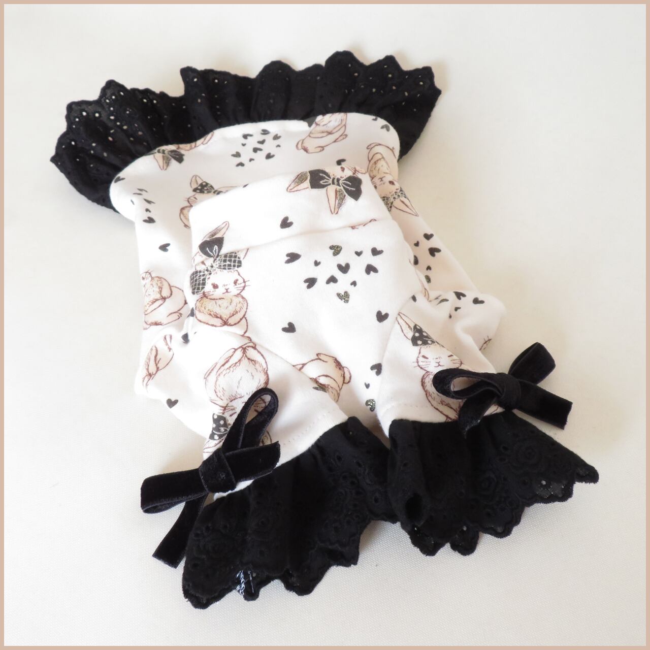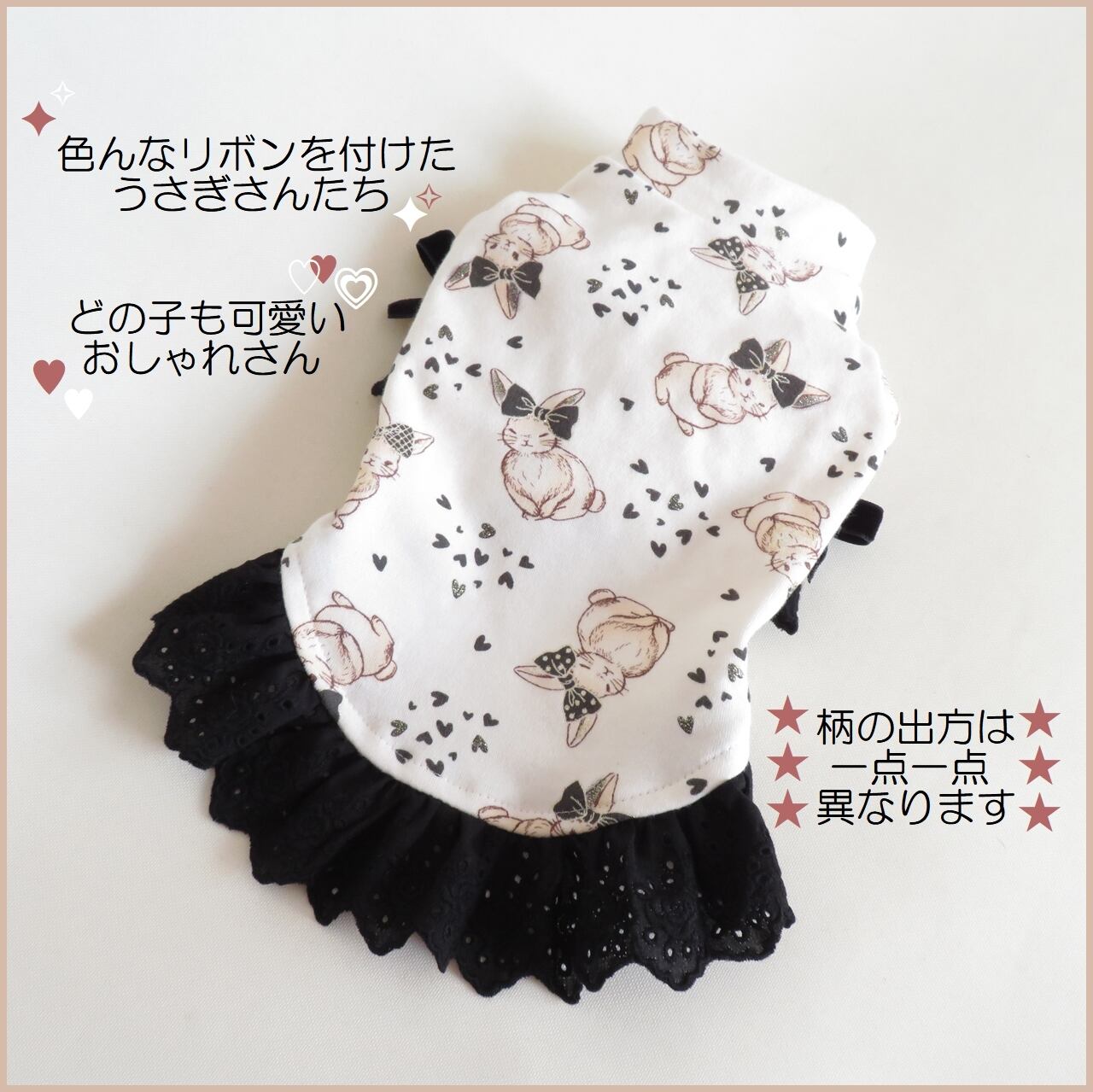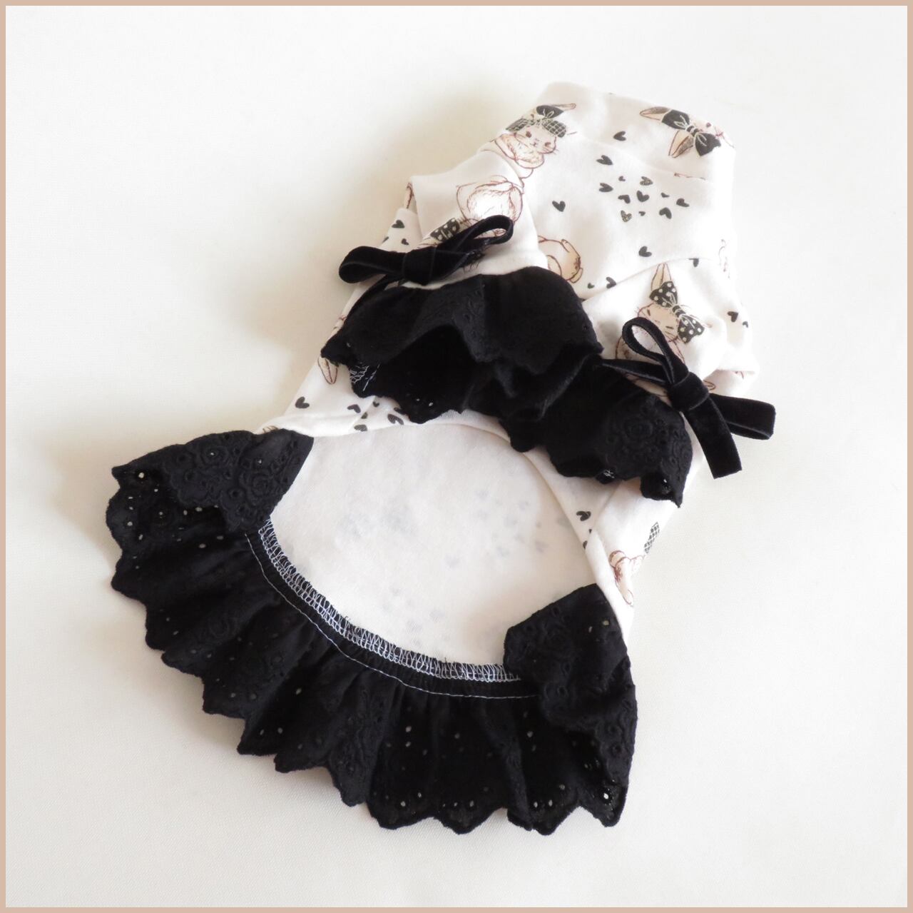 【オーダー品】★レース&リボン「モノトーンうさぎ」★ニットワンピース★3S~Mサイズ★犬服★