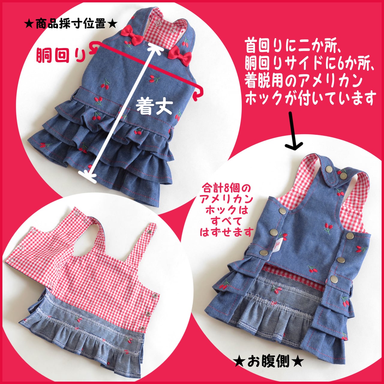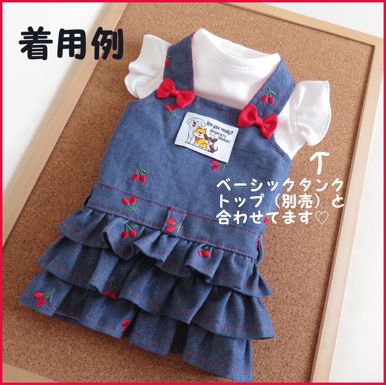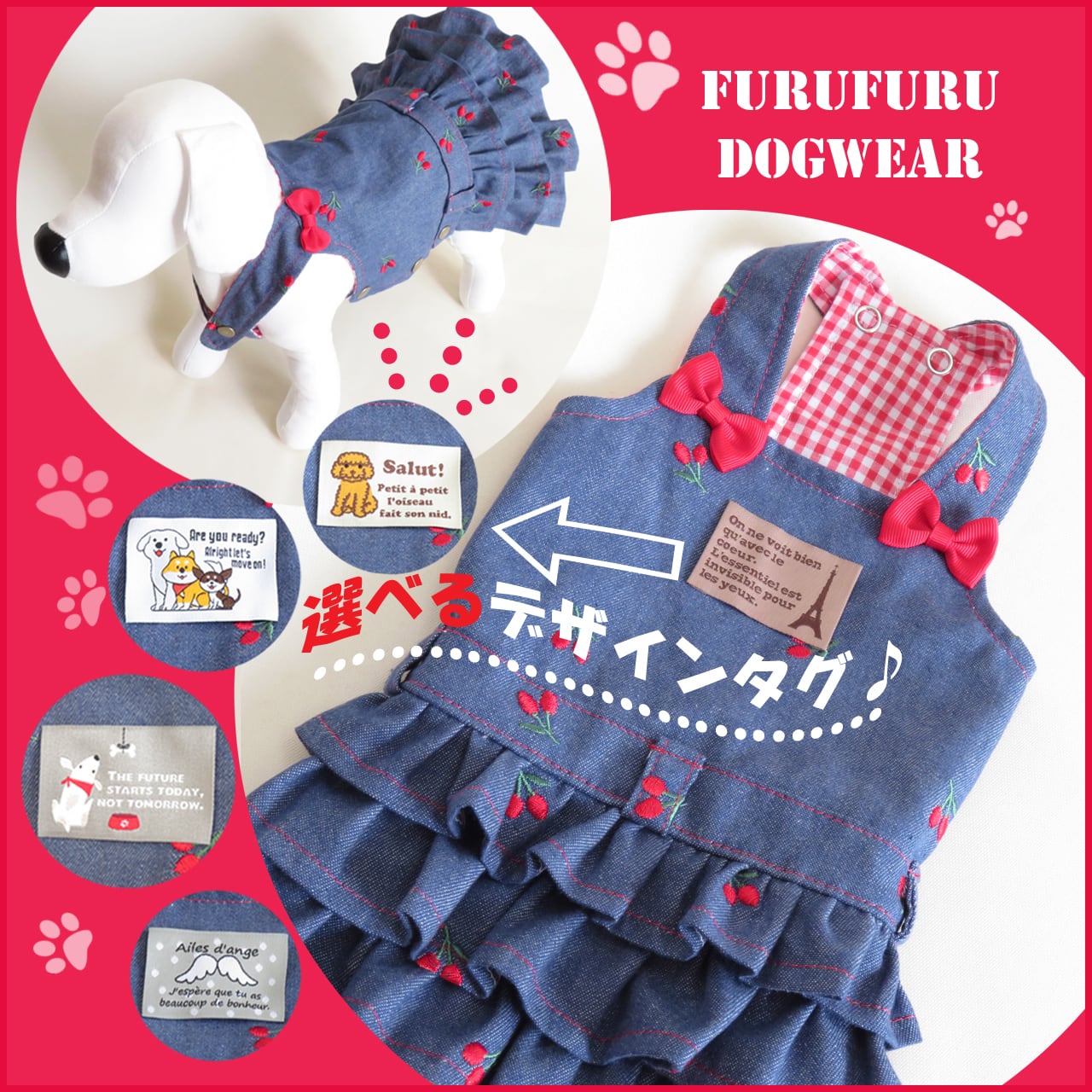 【オーダー品】★好きなタグを選べる!★さくらんぼ刺繡のサロペットスカート★胴回り32~42サイズ★犬服★