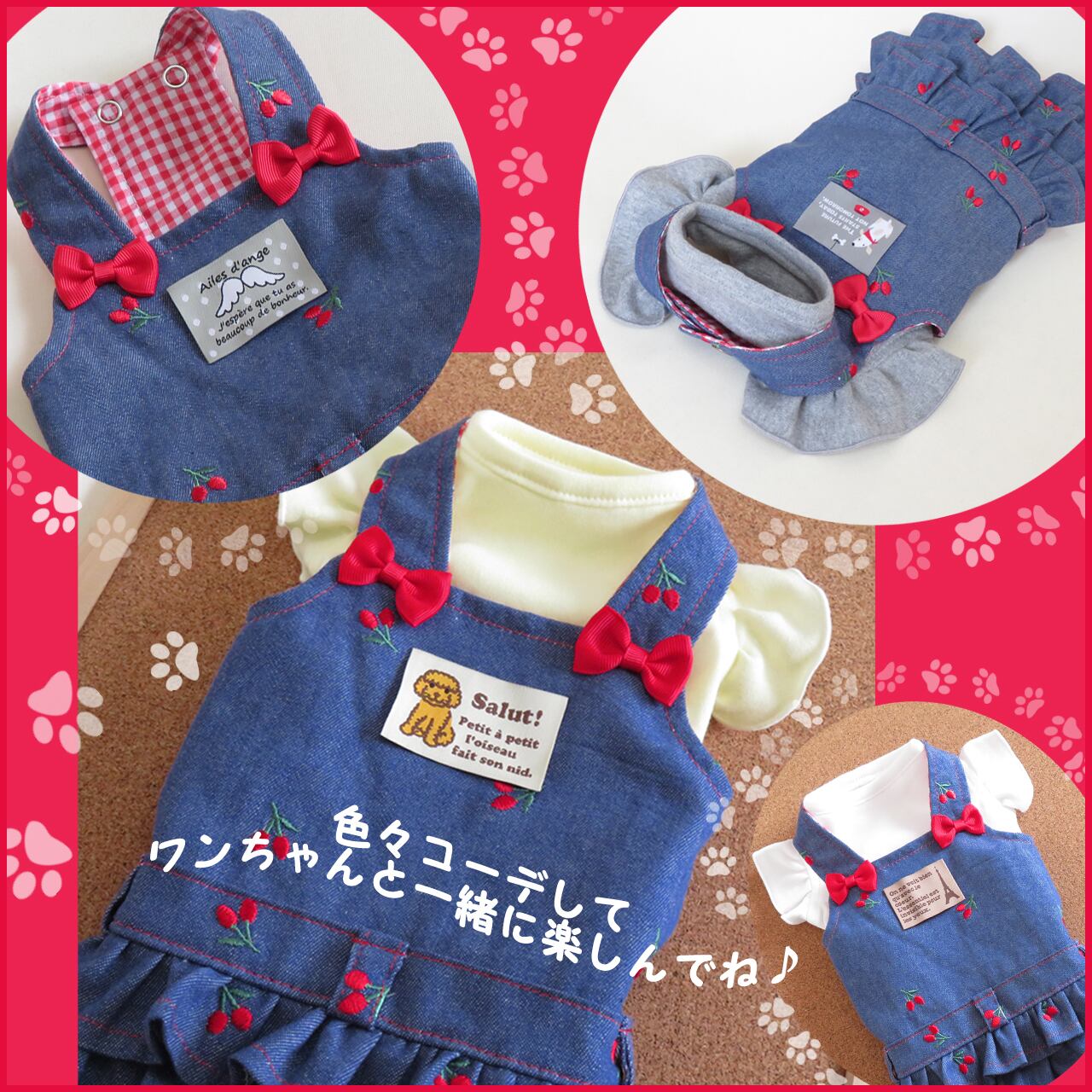 ★デニムカラーなのでどんな色とも相性が良いです。赤や白はもちろん、イエローやベビーブルーなど、色んなインナーと組み合わせて、ワンちゃんを素敵にコーデしてあげてくださいね♡